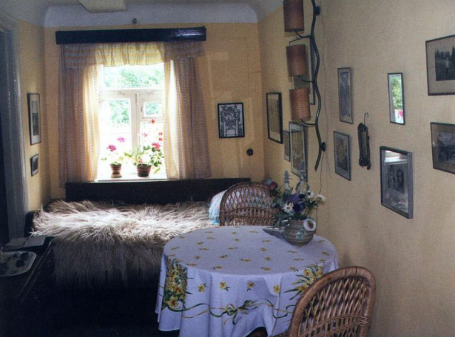 Над обрывом Таруски стоит в саду бревенчатый дом, половина которого принадлежала К.Г. Паустовскому. 13 апреля 1955 года о приобретении впервые упоминает сам Паустовский: «Татьяна Алексеевна со свойственной ей решительностью купила крошечный домик… в живописном городишке Тарусе». Через полтора месяца после покупки дома — первые впечатления: «В Тарусе очень хорошо. Окрестности сказочные…места здесь чудесные…В Москву не тянет»